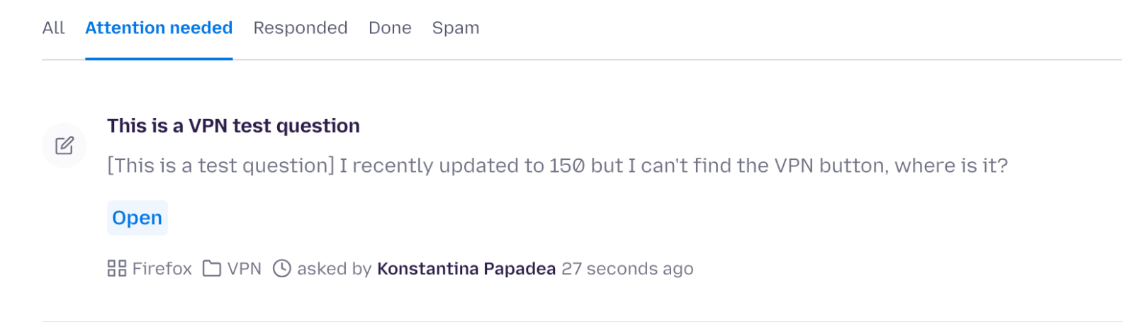 3. Pick a question that hasn’t been replied before where a user is asking about VPN availability. Look for things like “where is my VPN, I can’t find the VPN button, I am in Australia but there is no VPN button”.